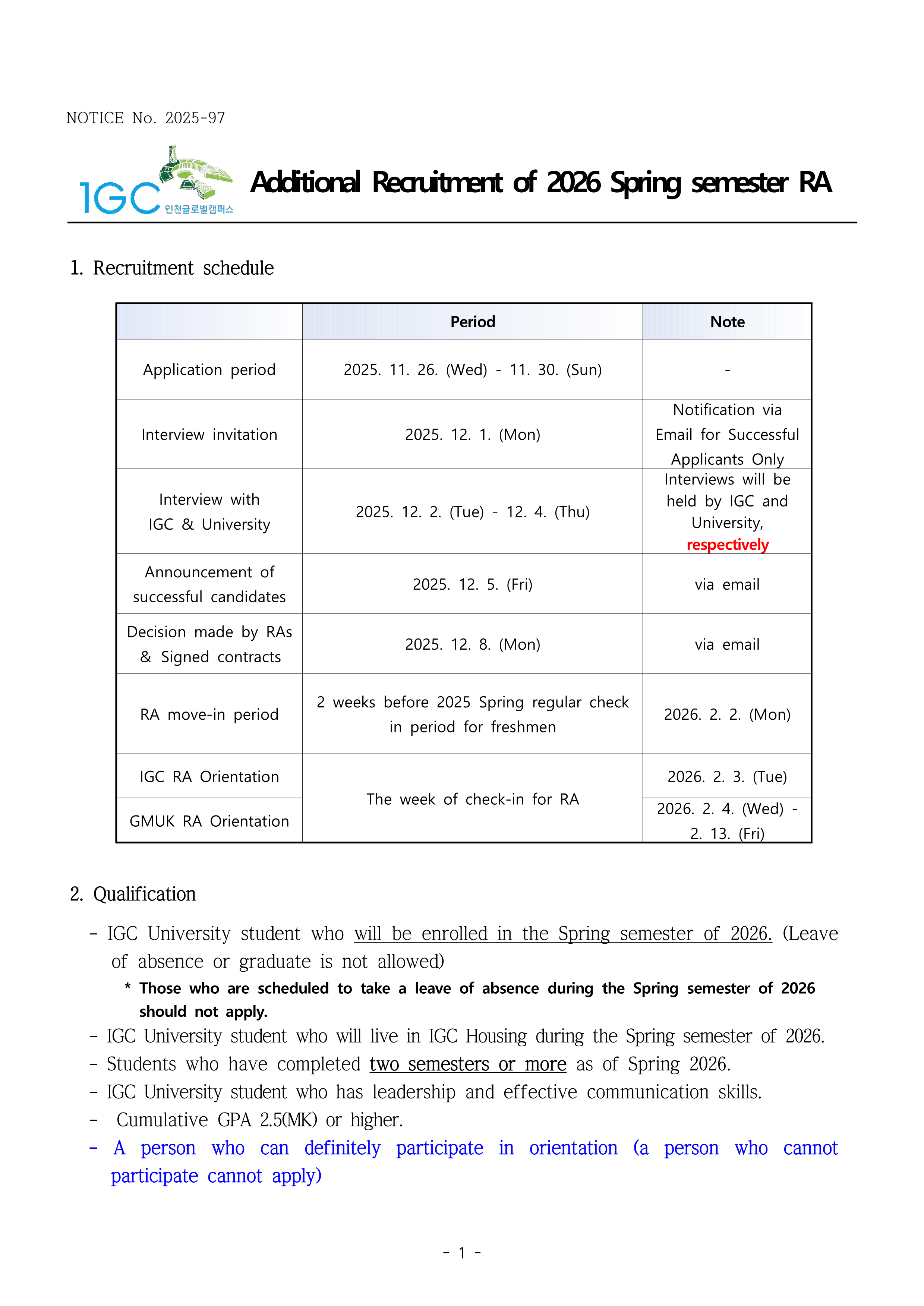 [GMUK] Additional Recruitment of 2026 Spring semester RA