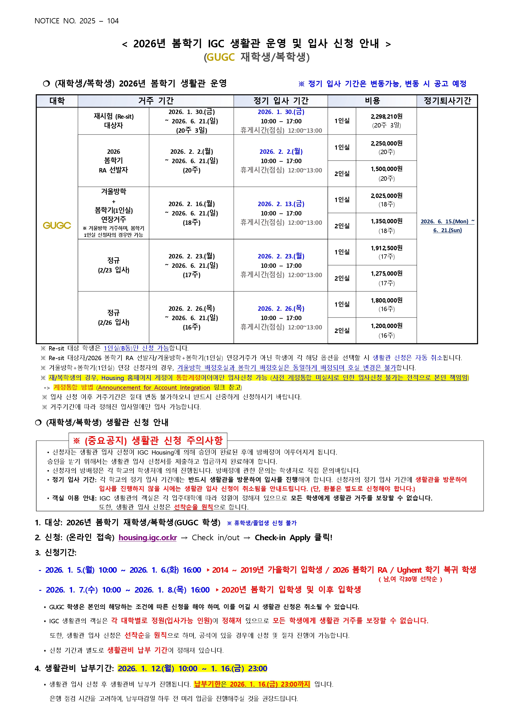 Attach: (KOR,ENG)[GUGC] 2026 Spring GUGC Housing Application Guideline(Continuing and Returning Students).pdf