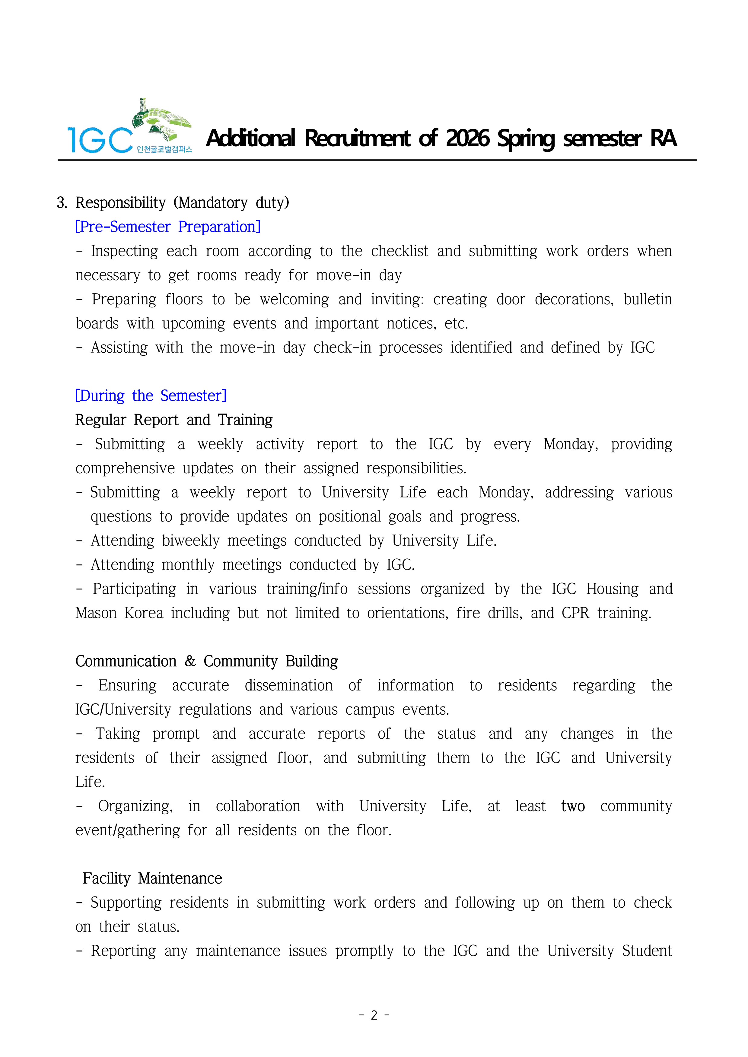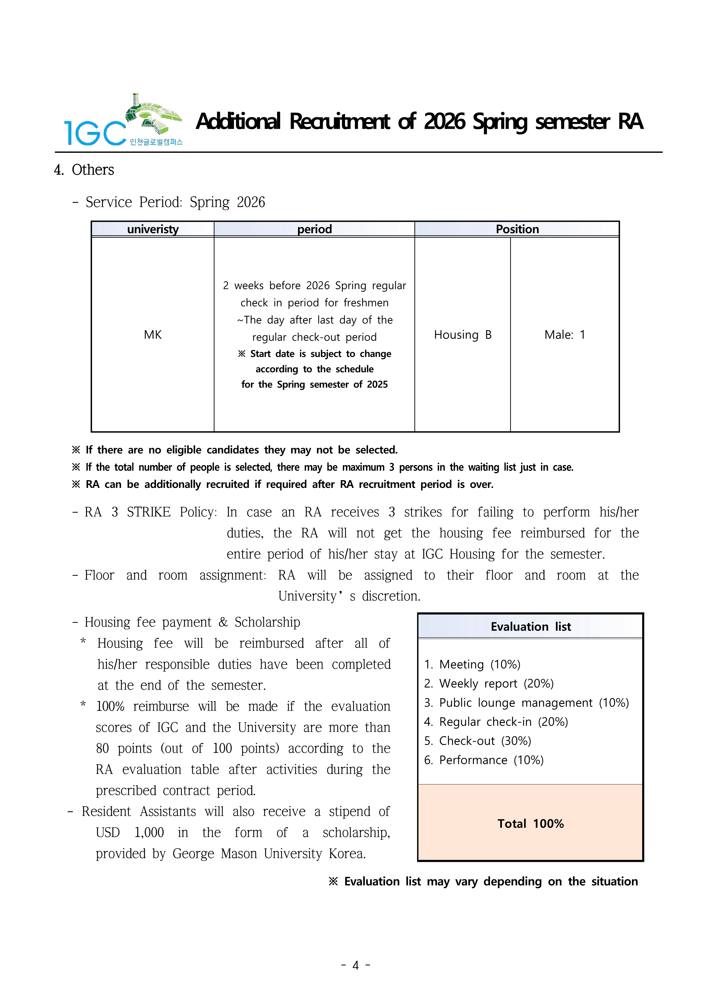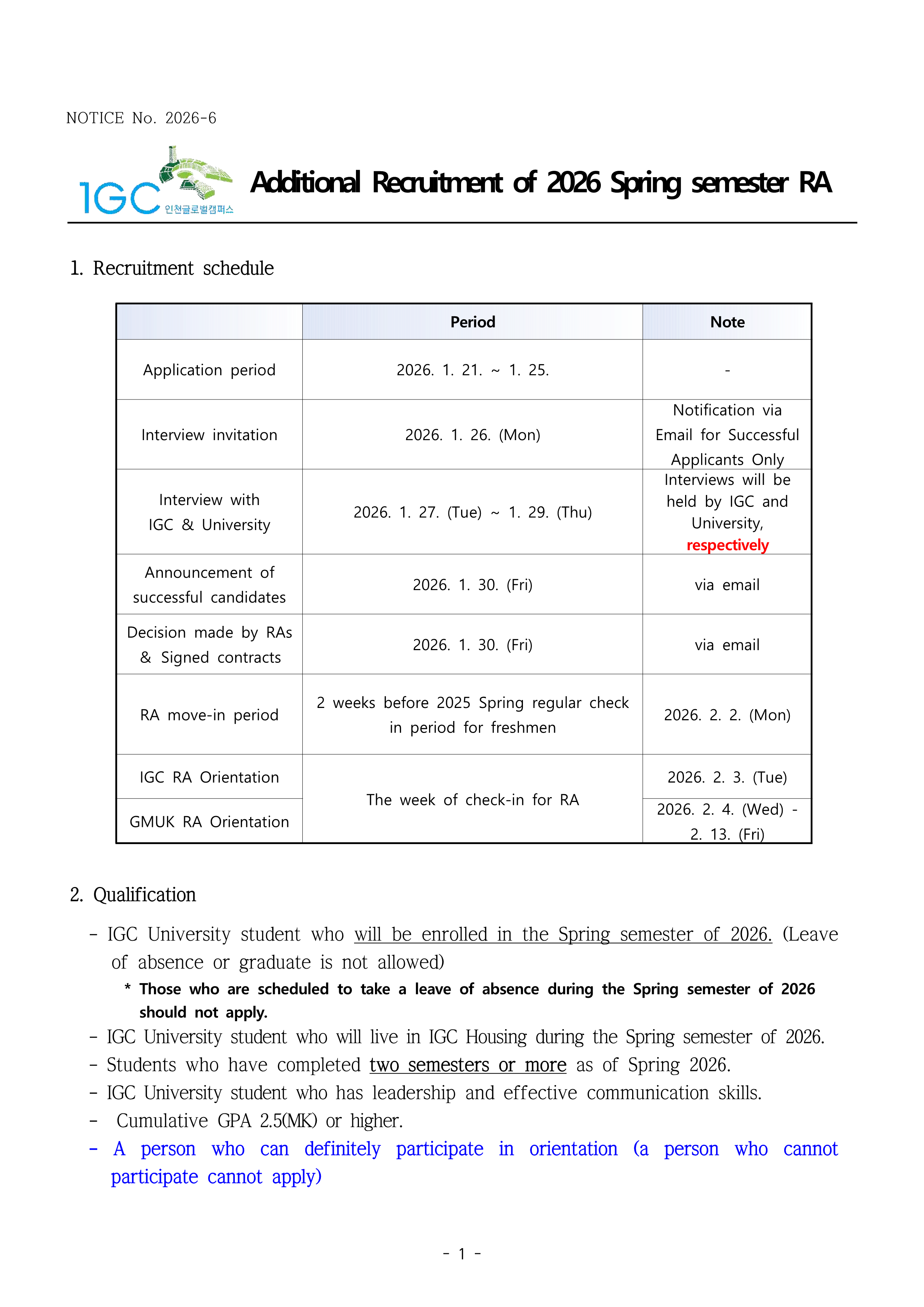 Recruitment 2026 Spring Semester GMUK RA (Male:1)