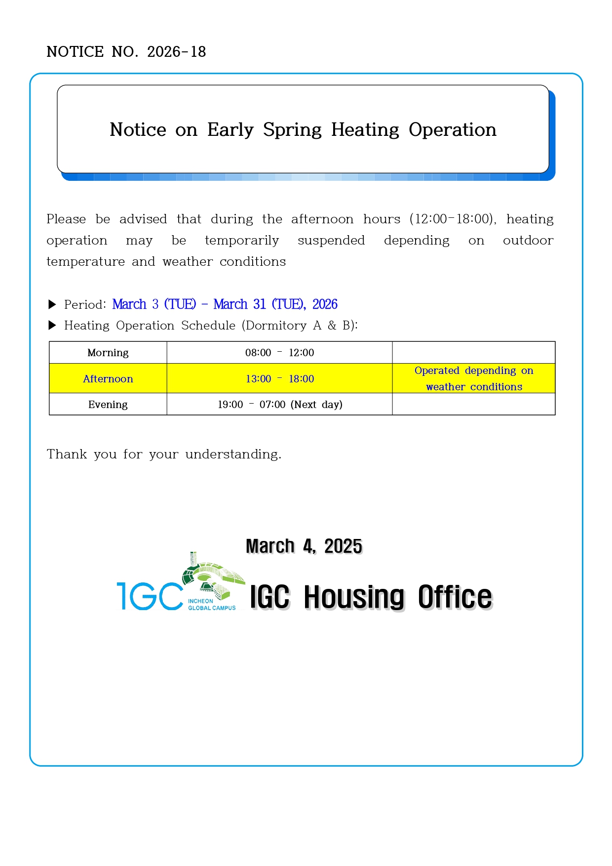 Notice on Early Spring Heating Operation