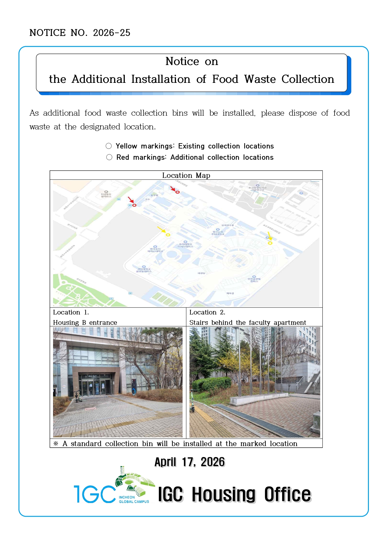 Notice on the Additional Installation of Food Waste Collection